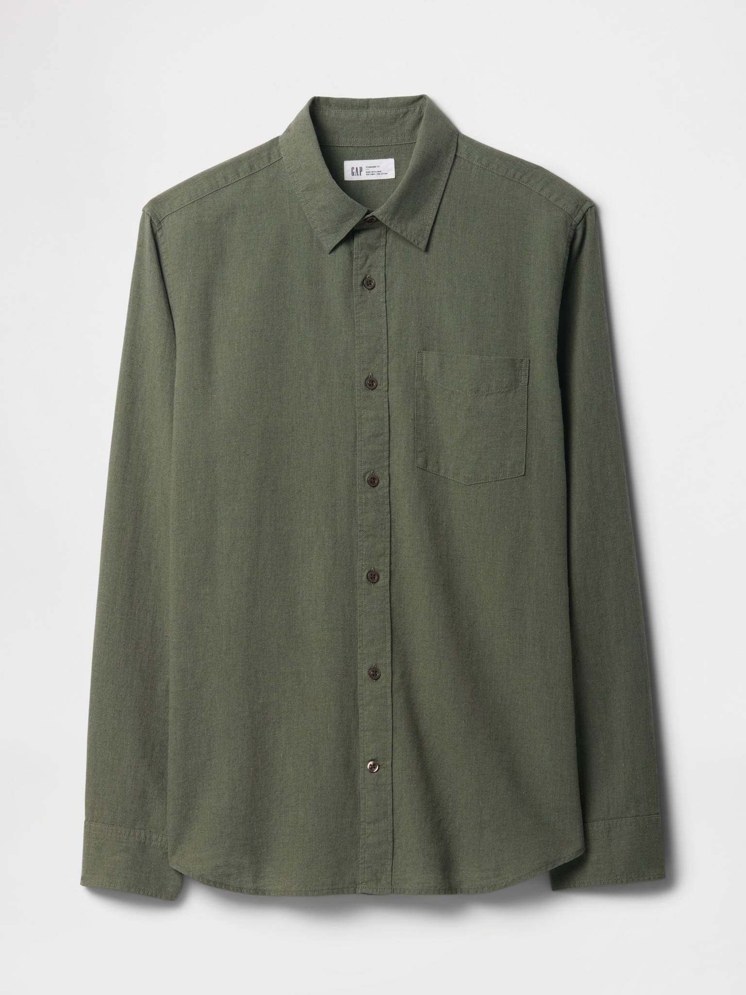 Herren-Leinwandhemd mit Stehkragen und Tasche REGULAR FIT - khaki