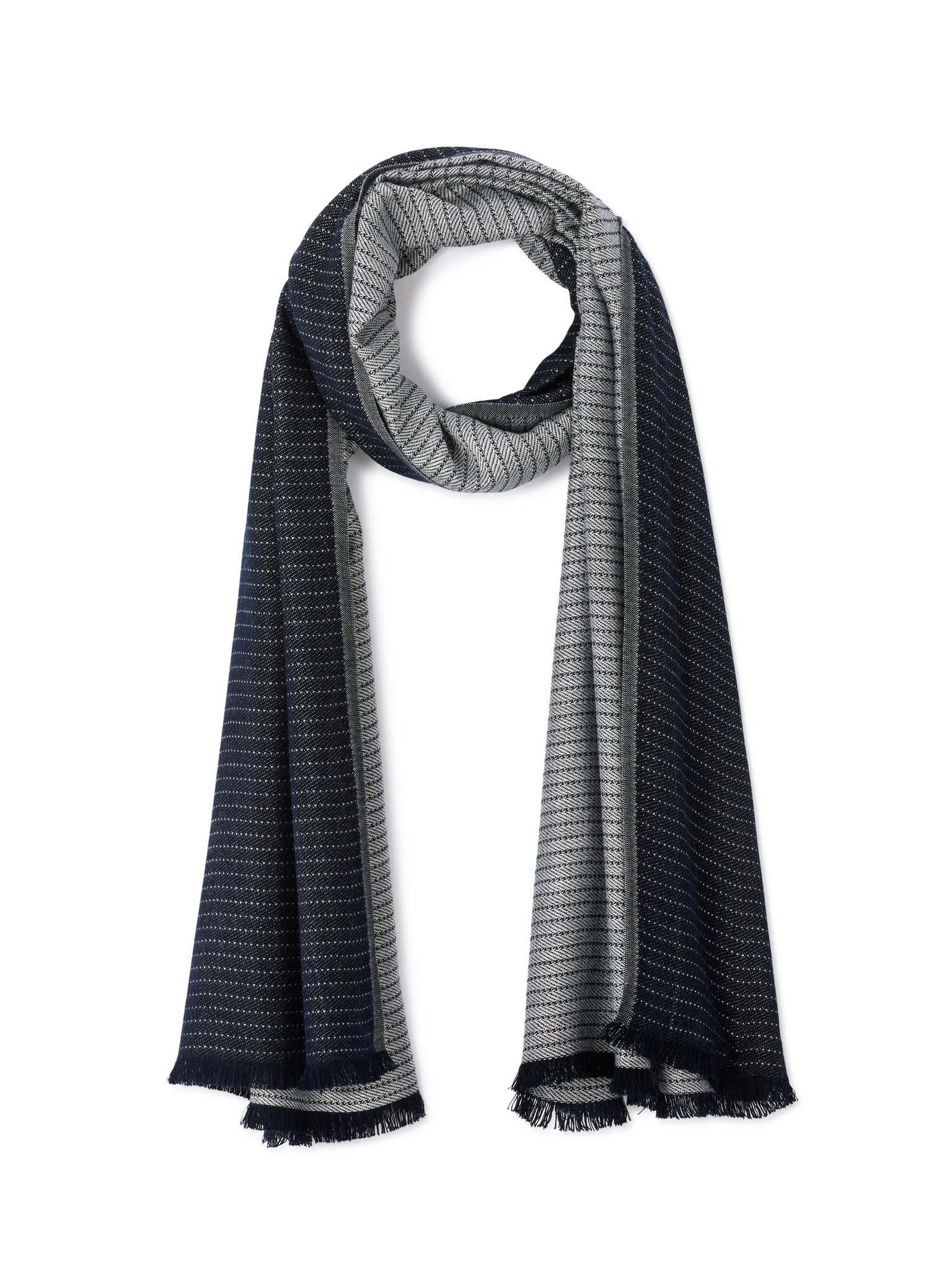 Gestrickter zweifarbig gestreifter Herrenschal dunkelblau Ombre Clothing