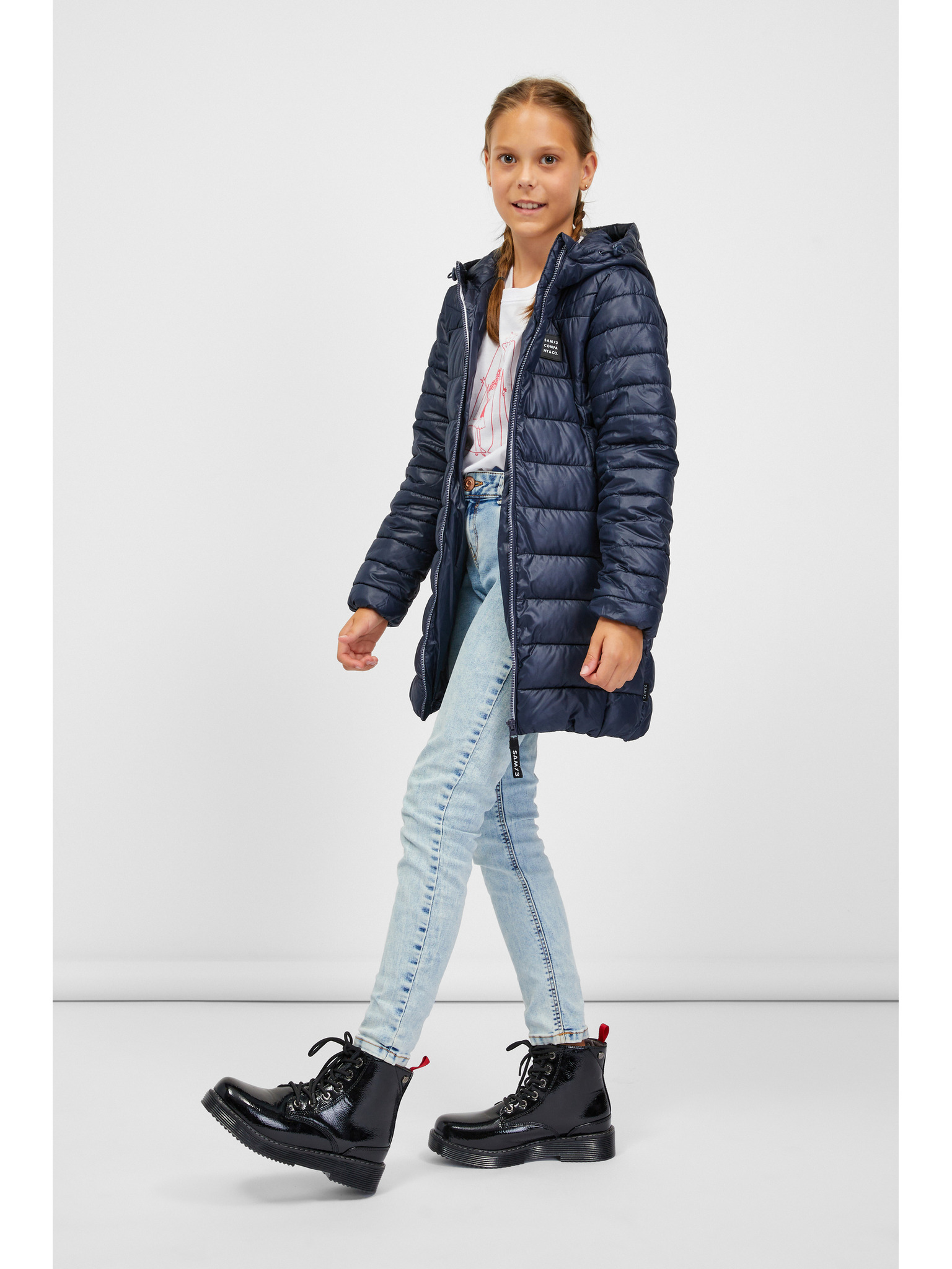 Dunkelblaue Steppwinterjacke für Mädchen mit abnehmbarer Kapuze Tom Tailor