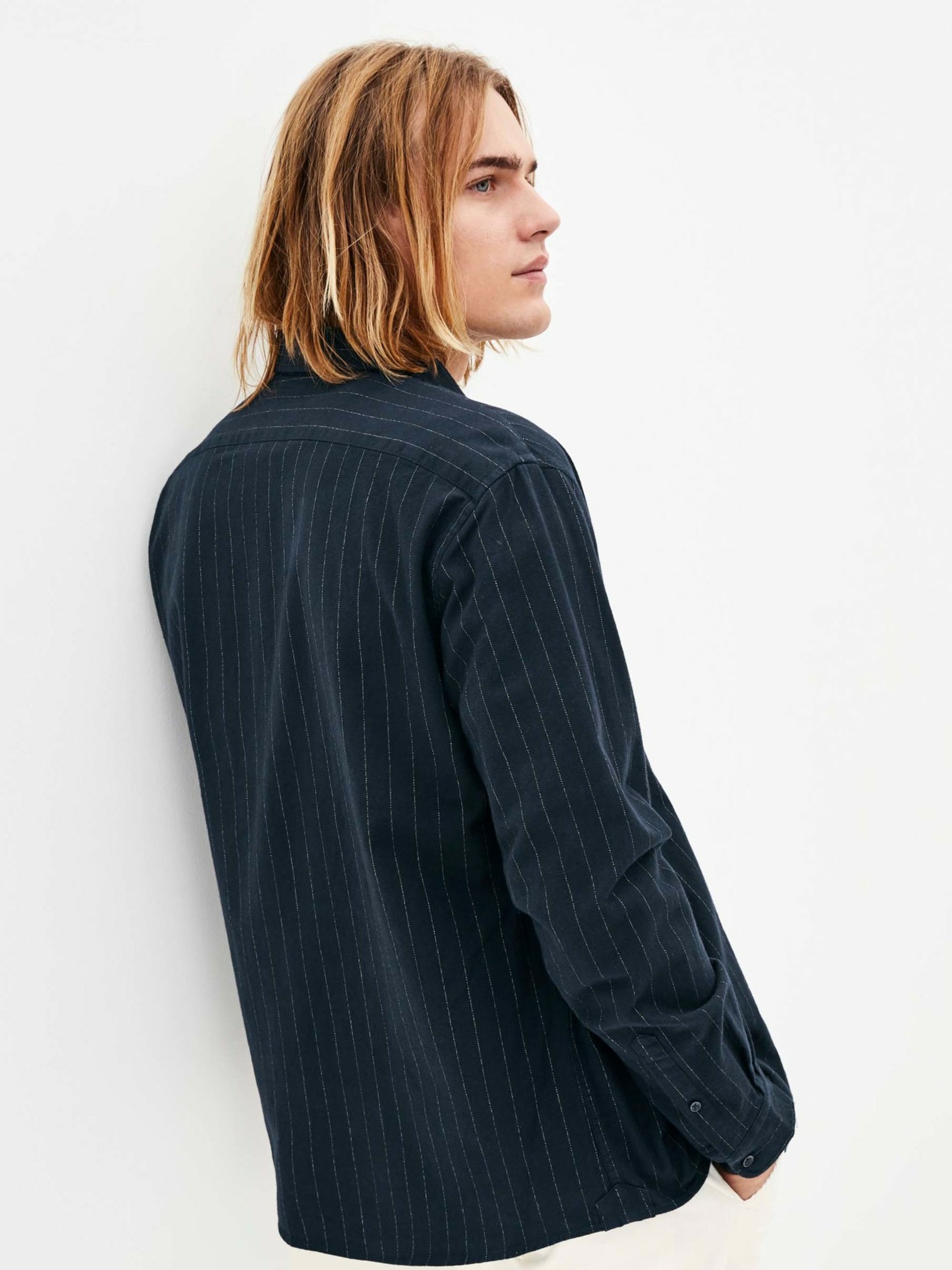 Gemustertes Herrenhemd aus feinem Denim mit Tasche - hellblau Ombre Clothing