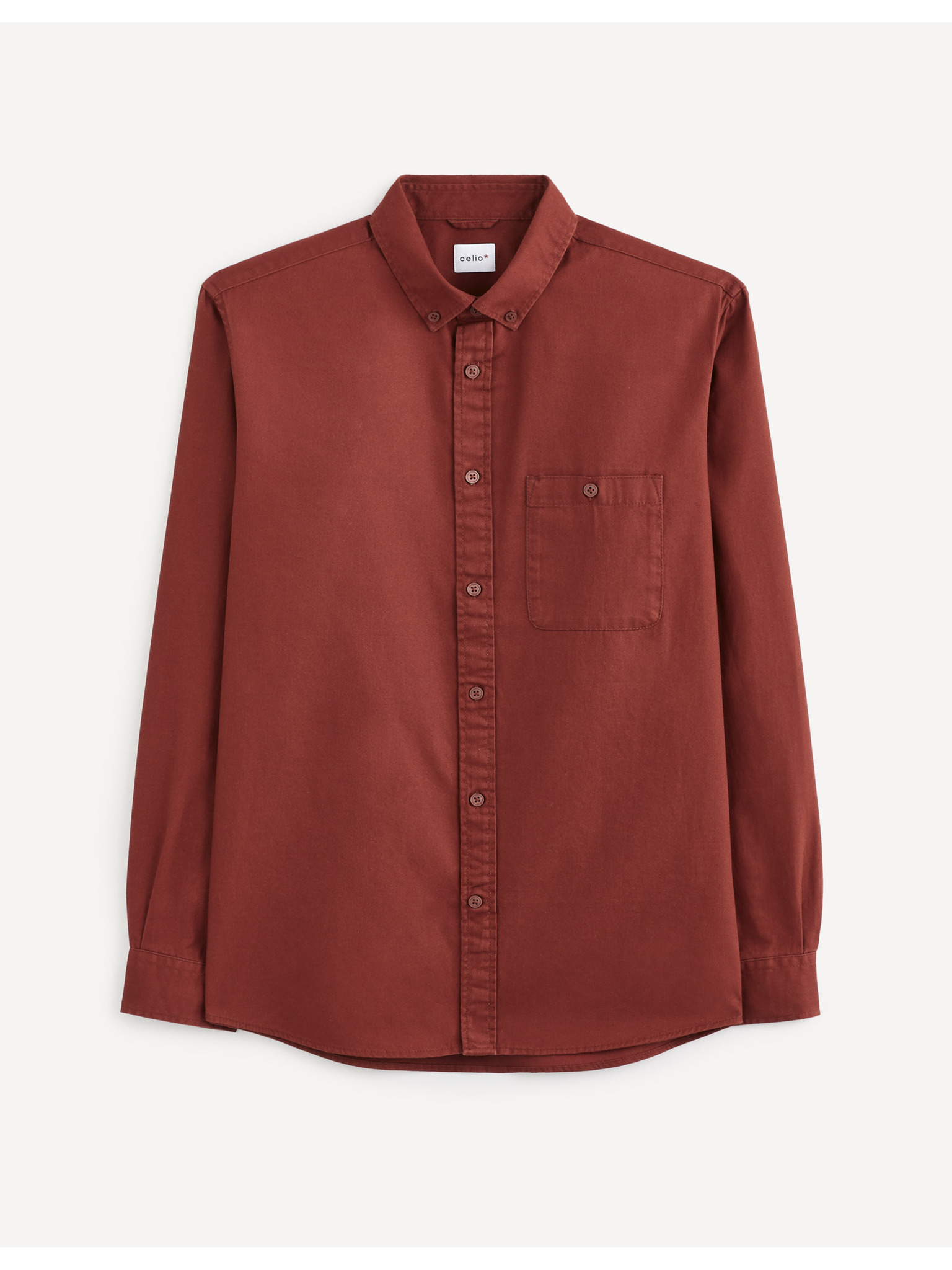 Burgunderfarbenes, gewaschenes Herrenhemd mit Tasche Celio