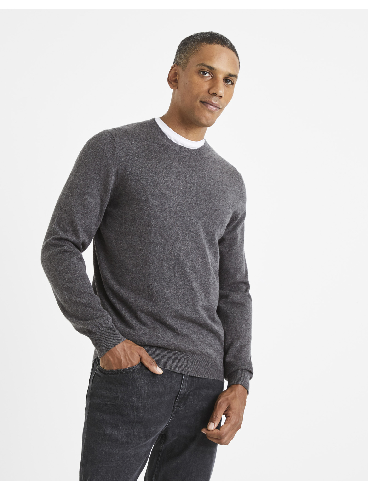 Hellgrauer Herren-Basic-Pullover Celio Celim