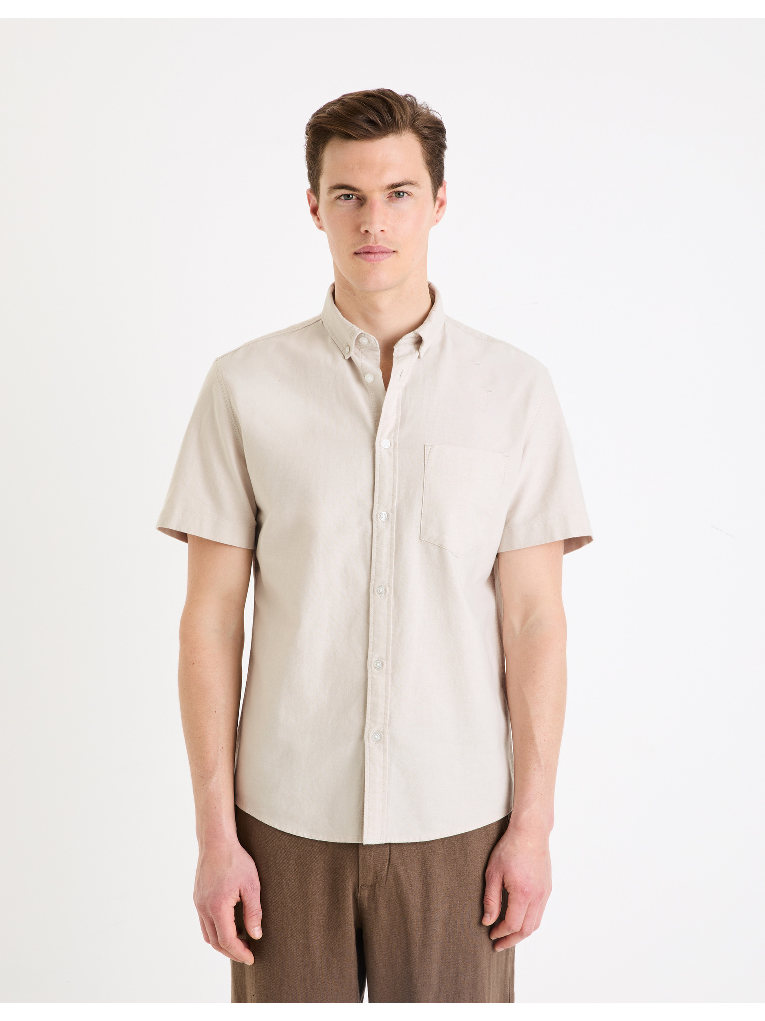 Beigefarbenes Herren-Leinenhemd Celio Damopoc