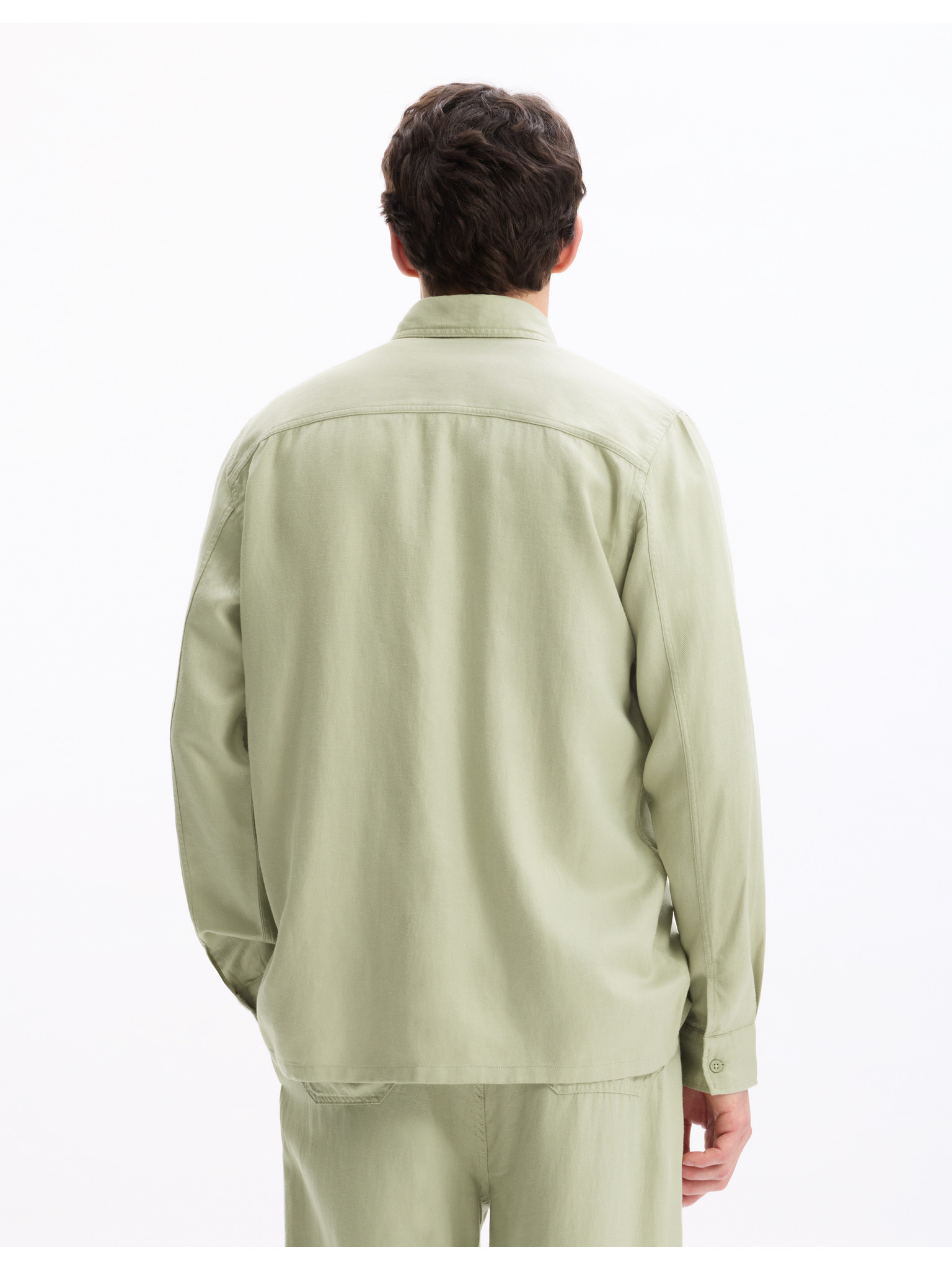 Herren-Leinwandhemd mit Stehkragen und Tasche REGULAR FIT - khaki