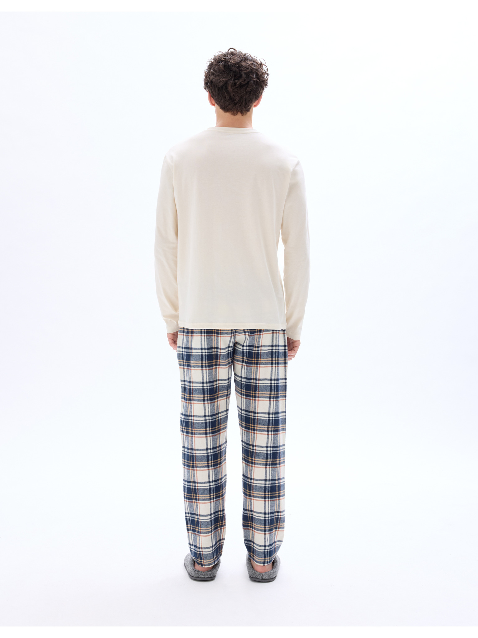 Neutrale karierte Pyjama-Garnitur aus reiner Baumwolle von Marks & Spencer in creme