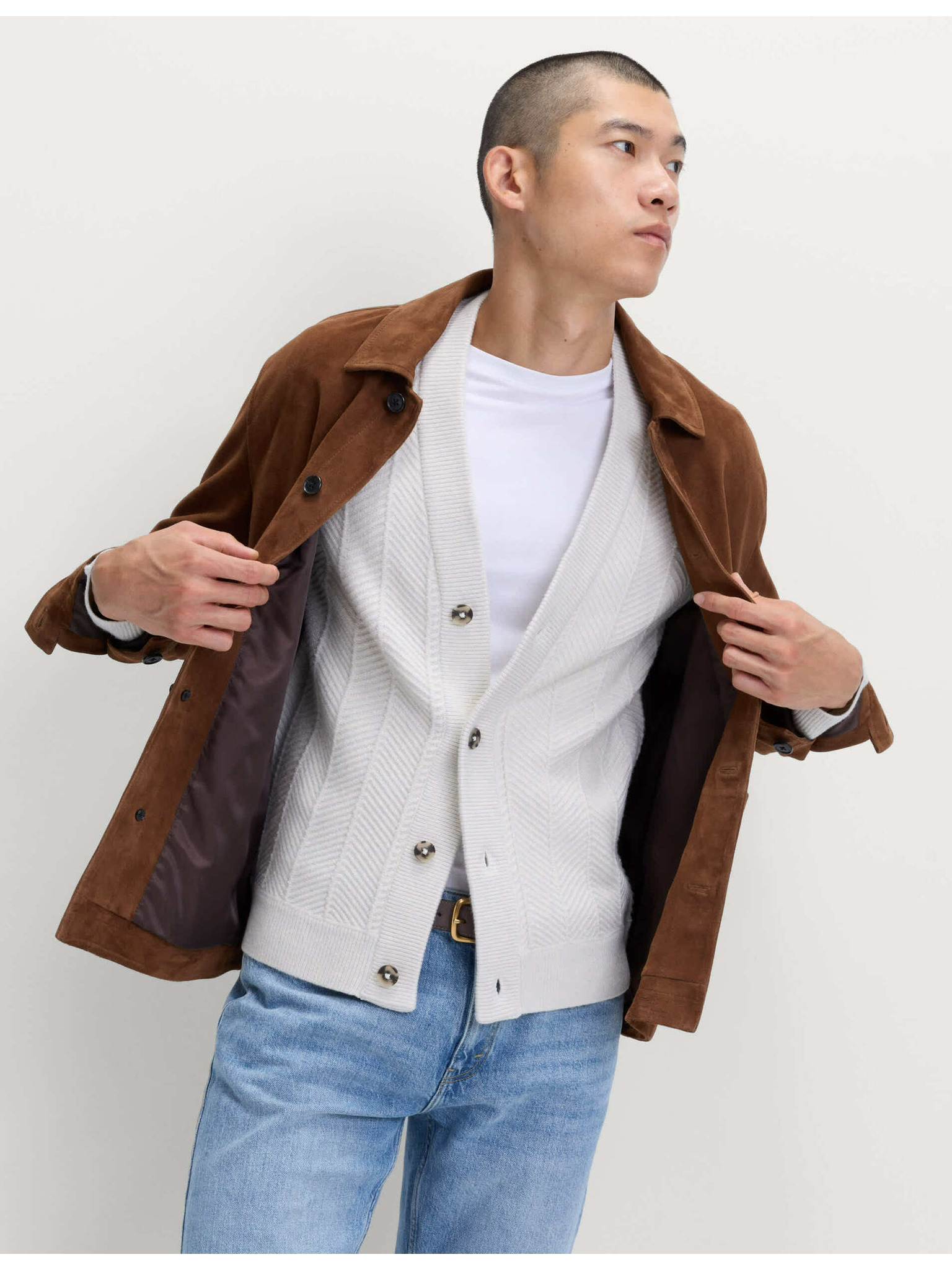 Herren Melange strukturierter Strickpullover sand Ombre Kleidung
