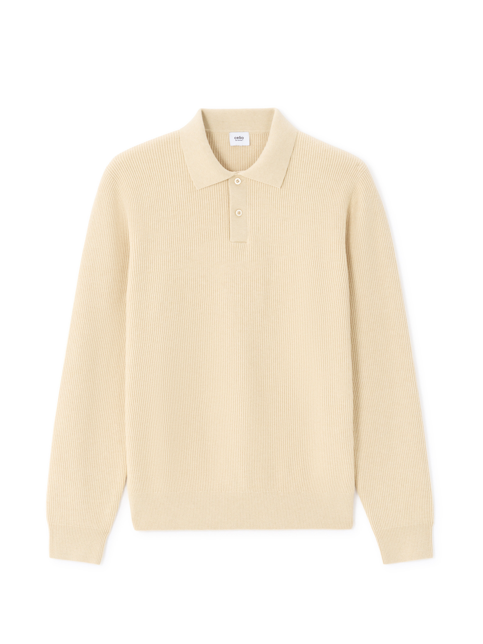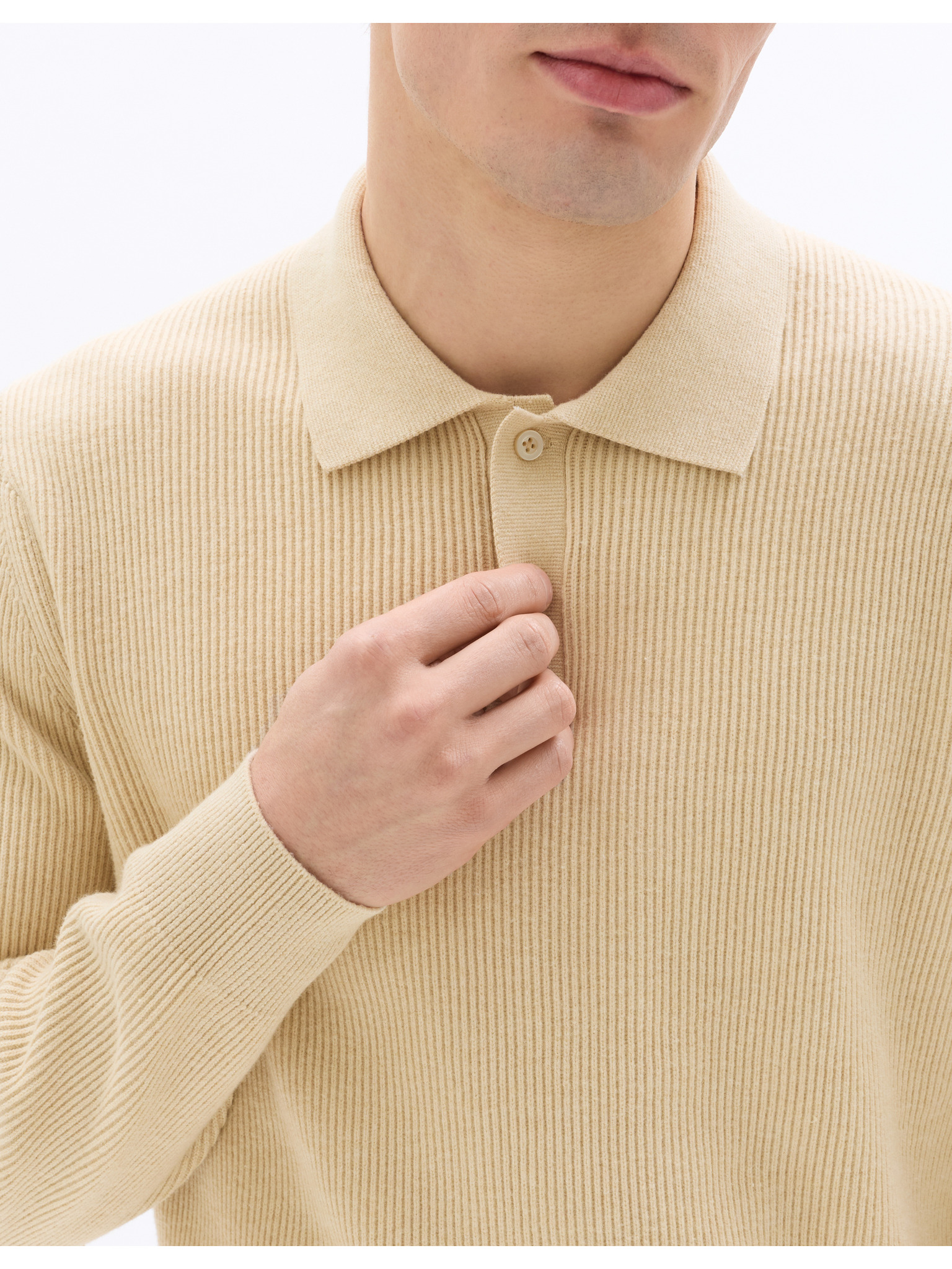 Herren-gerippter Pullover mit Knöpfen am Halsausschnitt - beige V3 OM-SWSW-0182 Ombre Clothing