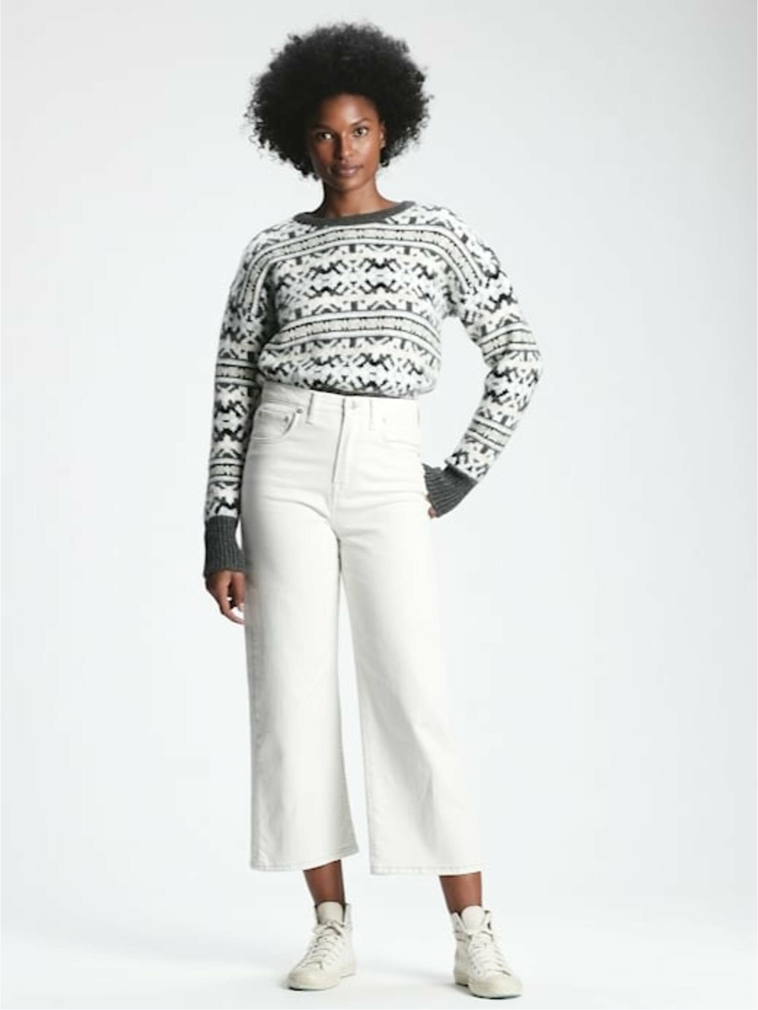 Gemusterter Pullover in lockerer Passform schwarz Moodo