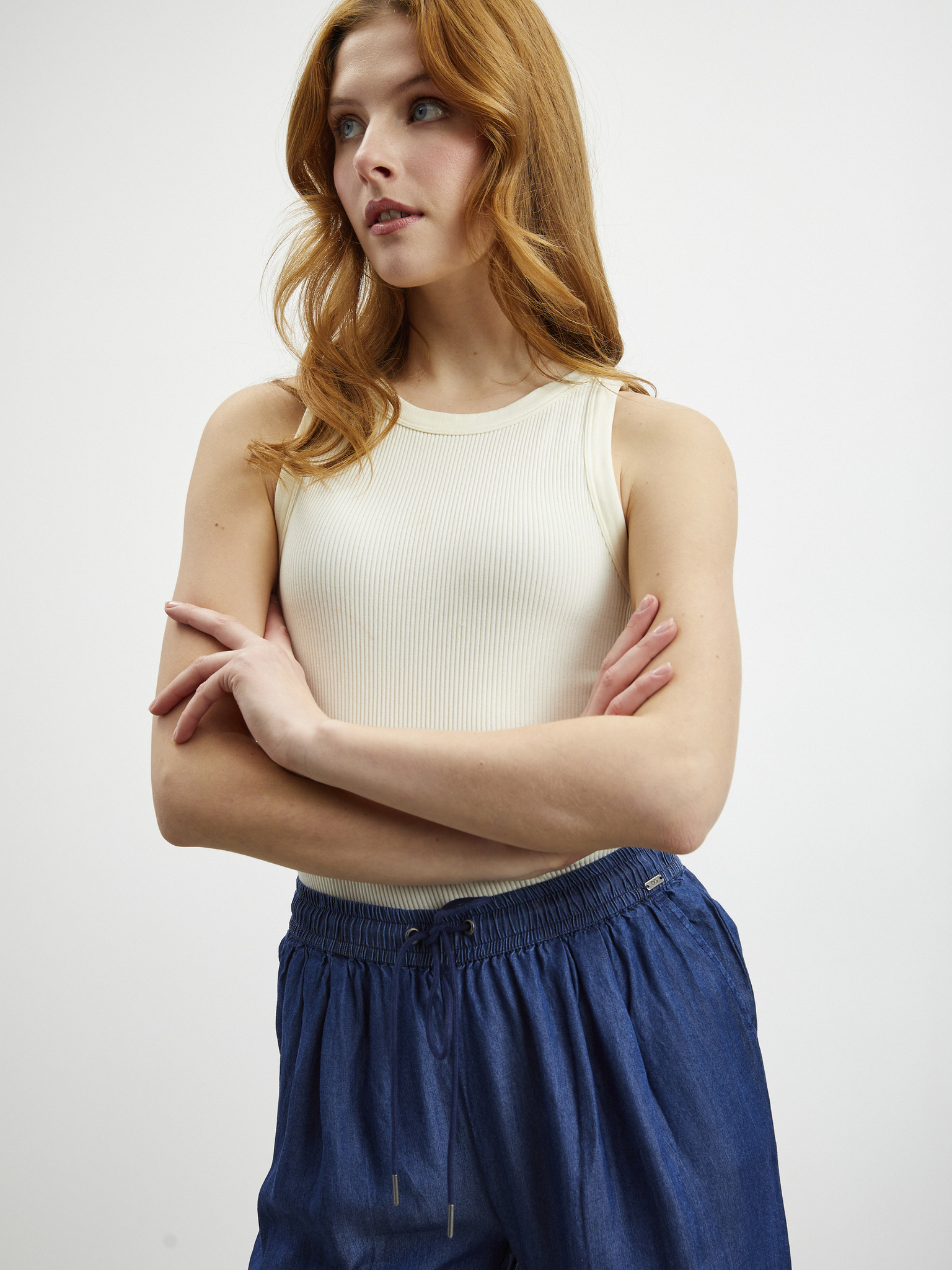 Beigefarbene Damen-Crop-Hose mit Krawatte ZOOT.lab Alyza