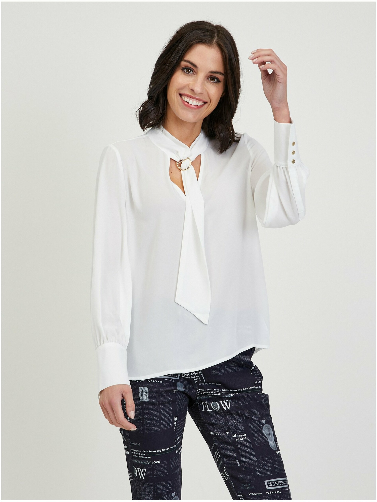Beige Bluse mit langen Ärmeln ORSAY