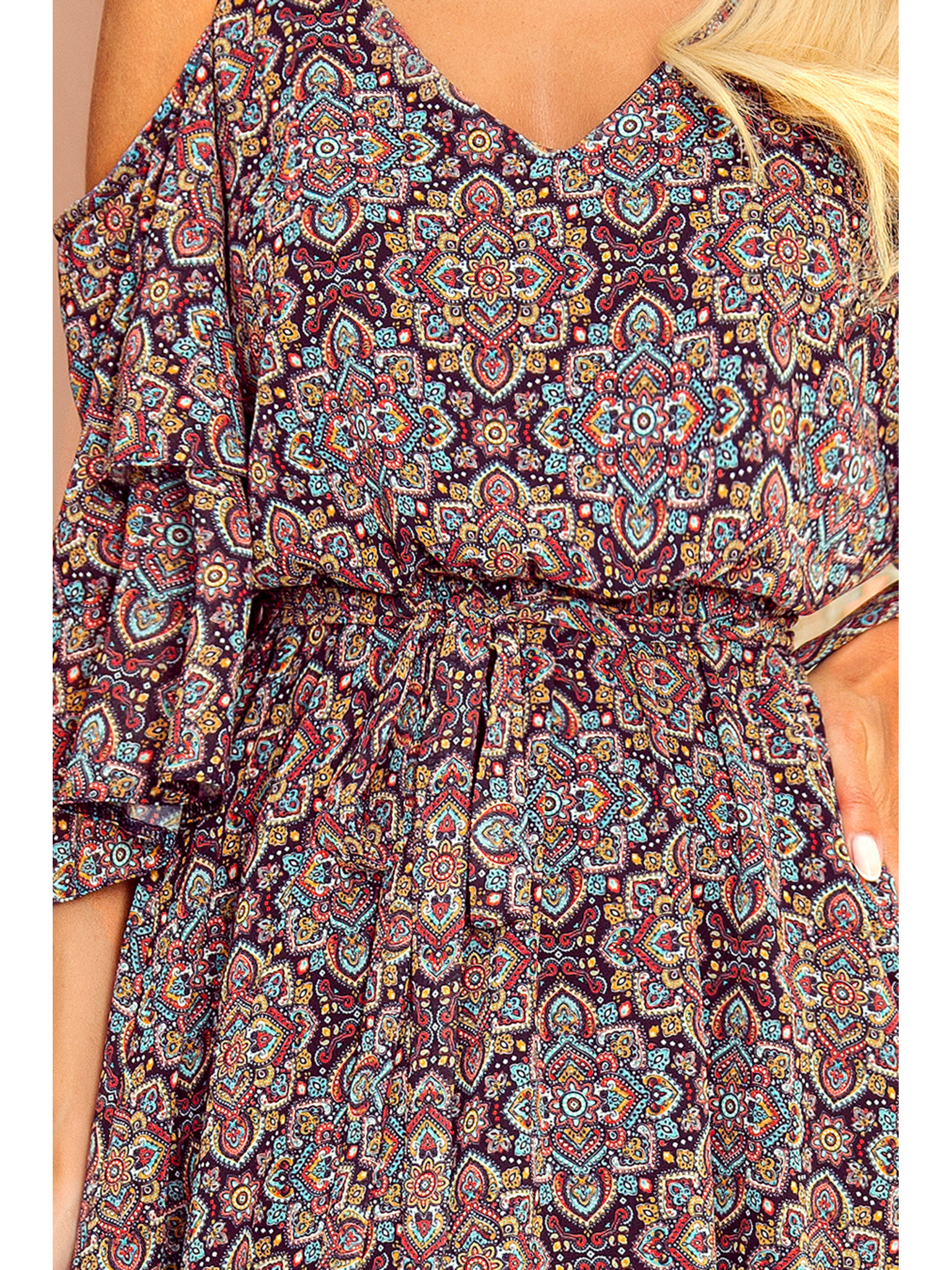 296-13 VICTORIA Boho-Kleid mit Trapezform und mediterranem Muster