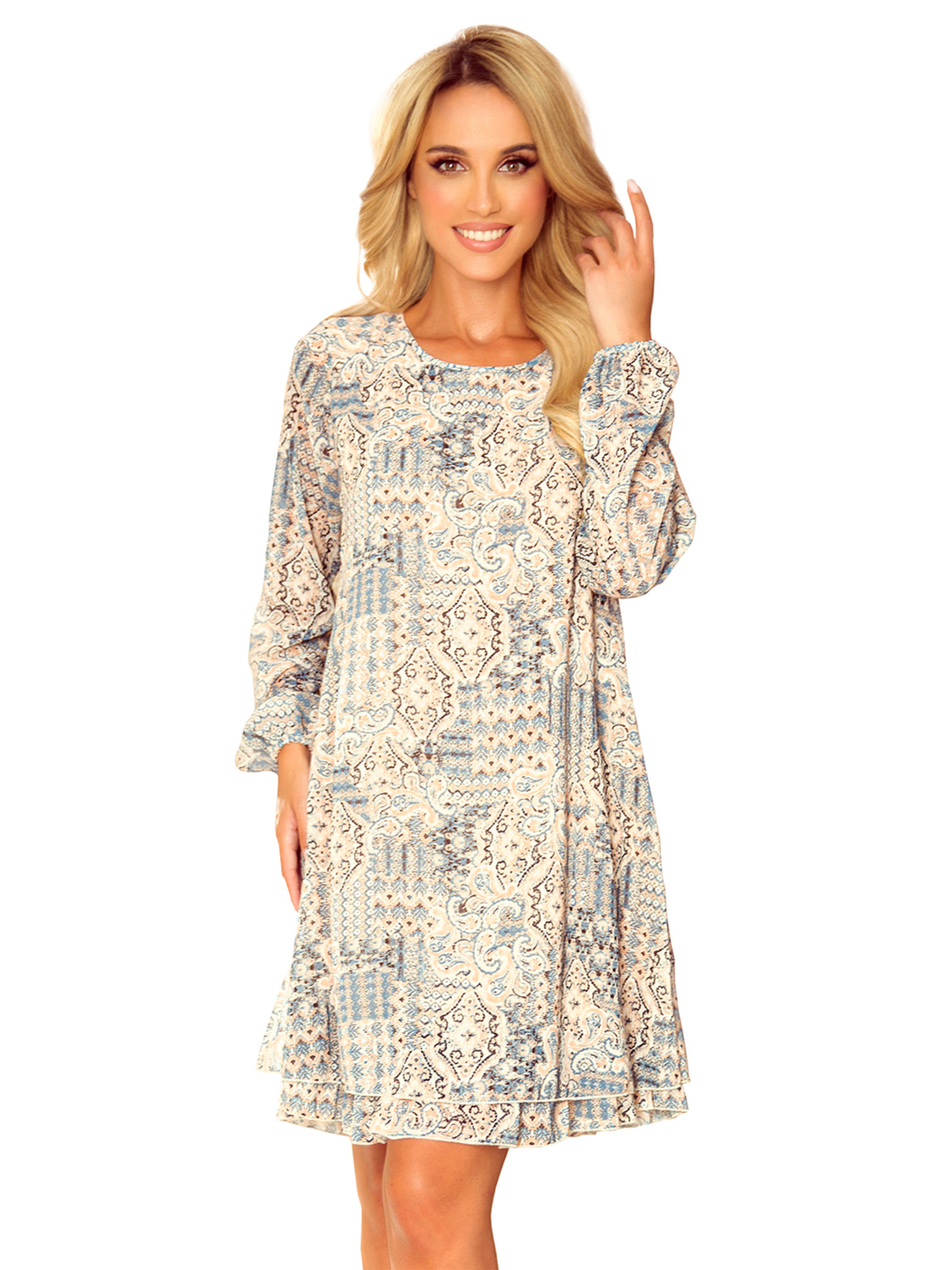 296-13 VICTORIA Boho-Kleid mit Trapezform und mediterranem Muster