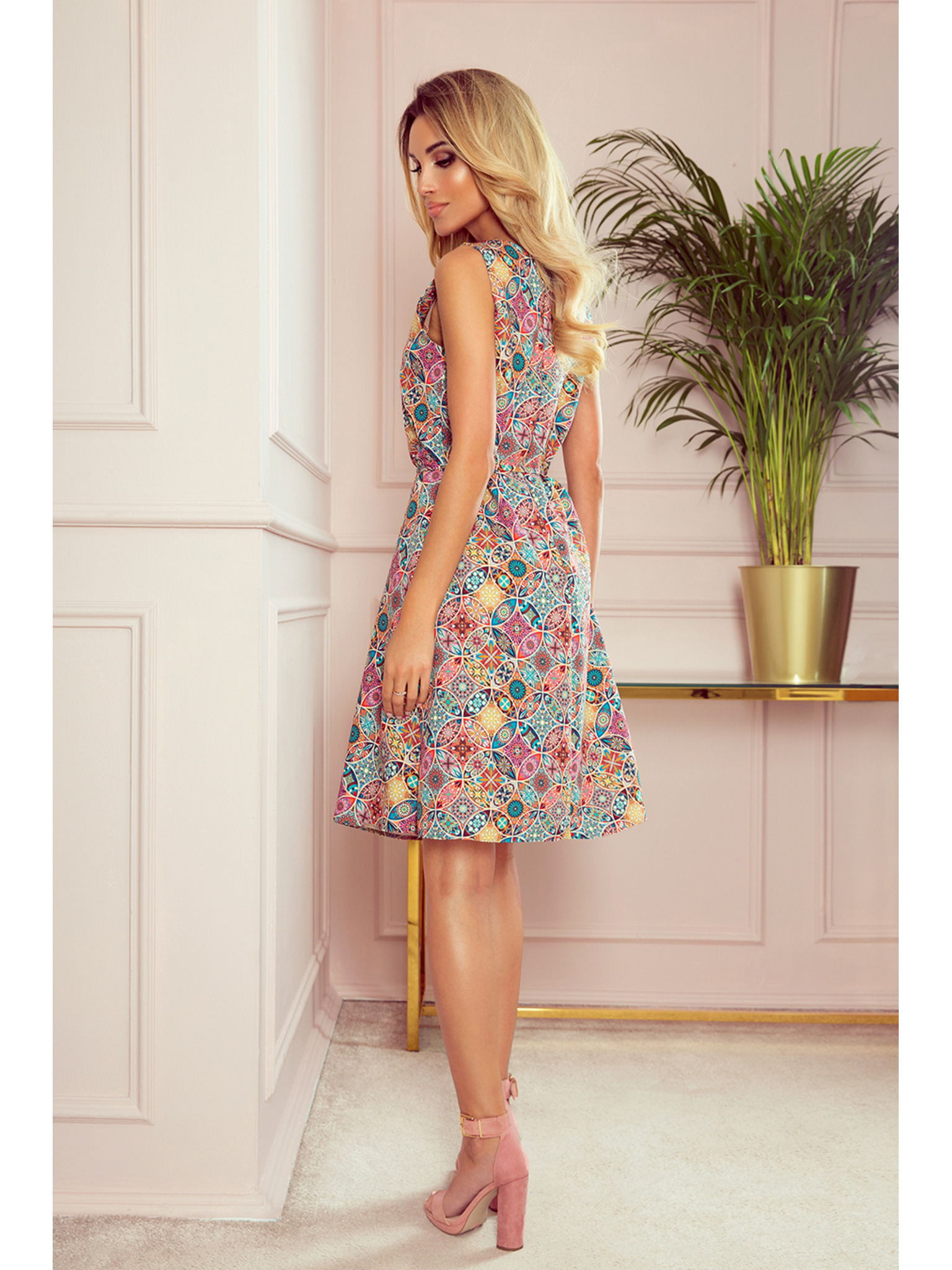 Plisseekleid mit Ausschnitt und Rüschen - rosa Blumen Numoco POLINA
