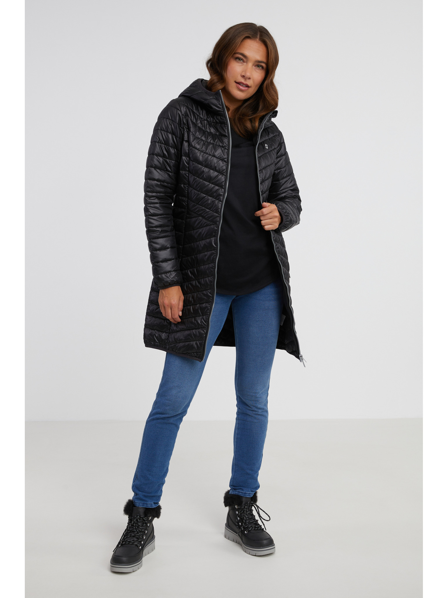 Schwarzer leichter Damen Steppmantel mit Kragen ZOOT.lab Sienna