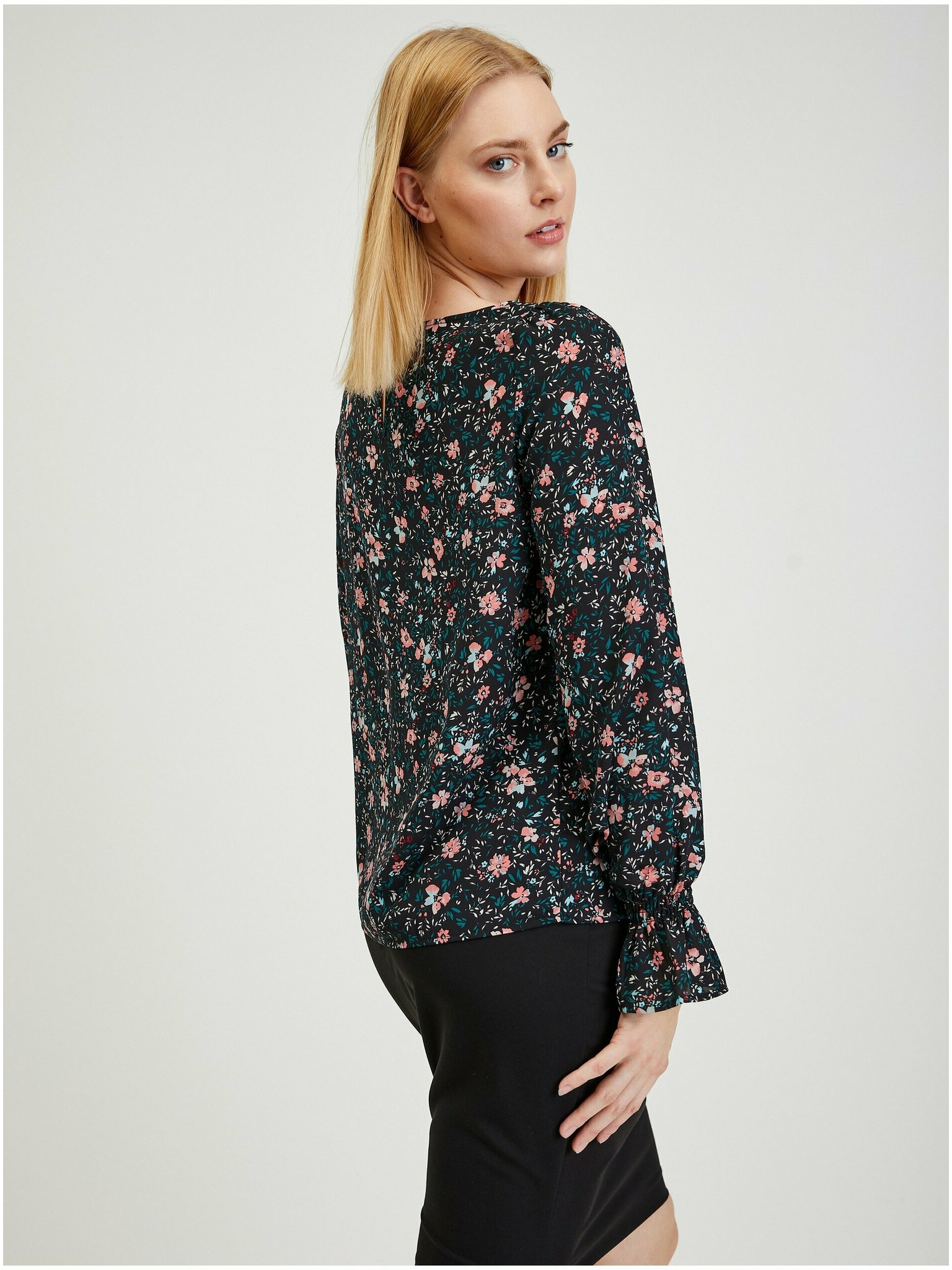Schwarze Damen-Bluse mit Blumenmuster ORSAY