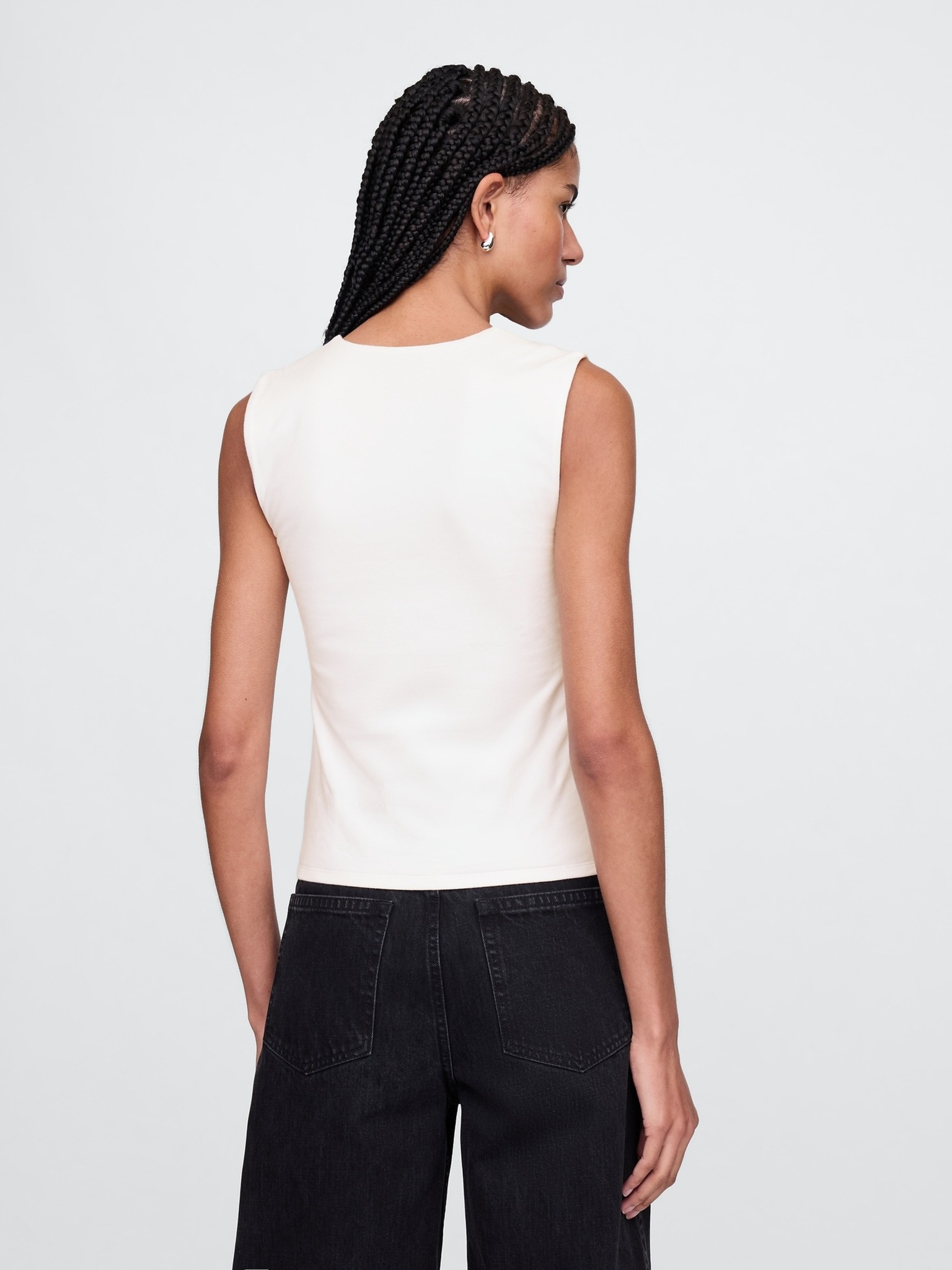 • Der quadratische Ausschnitt und das ärmellose Design verleihen dem Top eine elegante und moderne Optik.