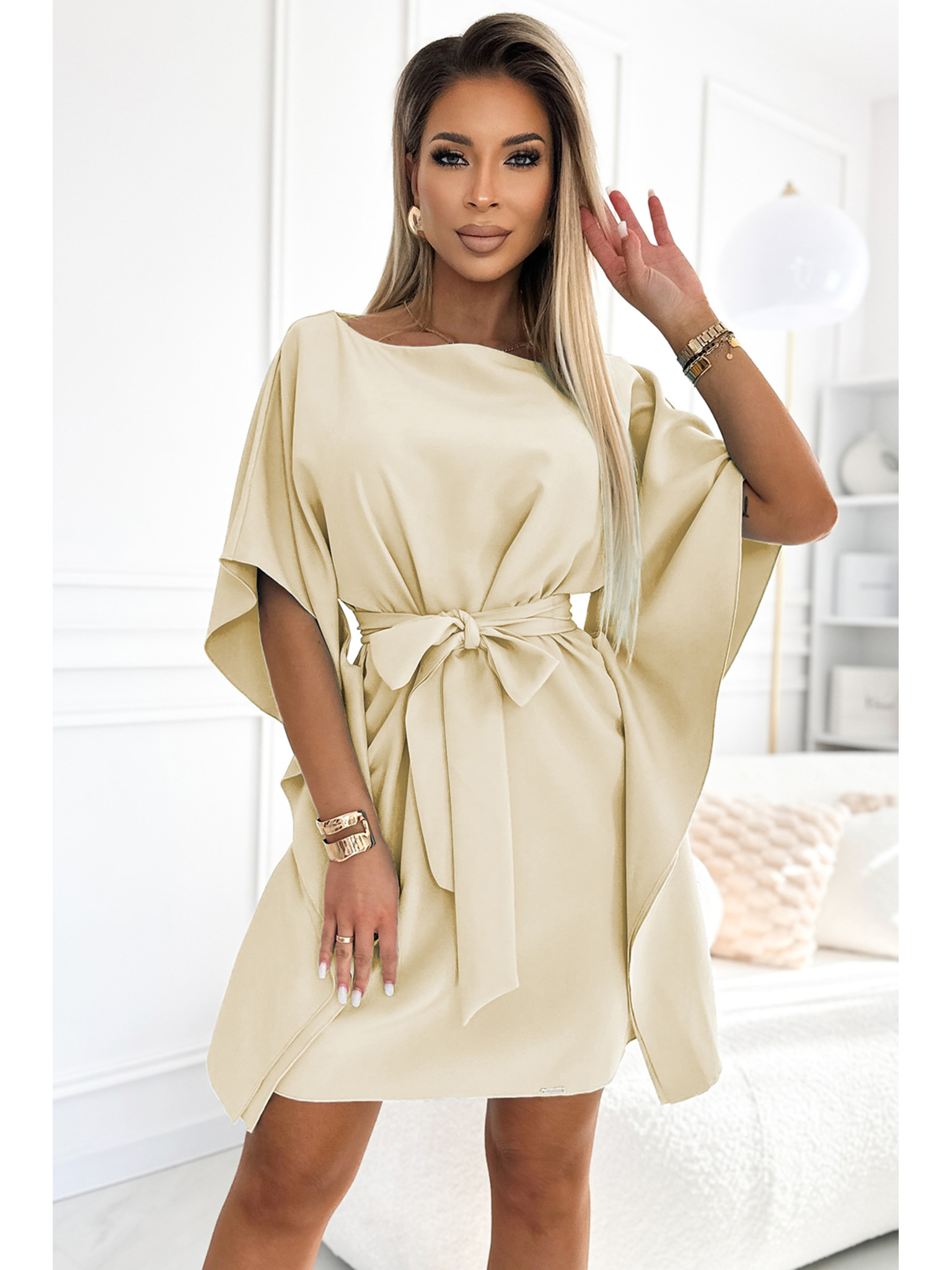 Kleid mit weitem Ausschnitt – beige Numoco NINA