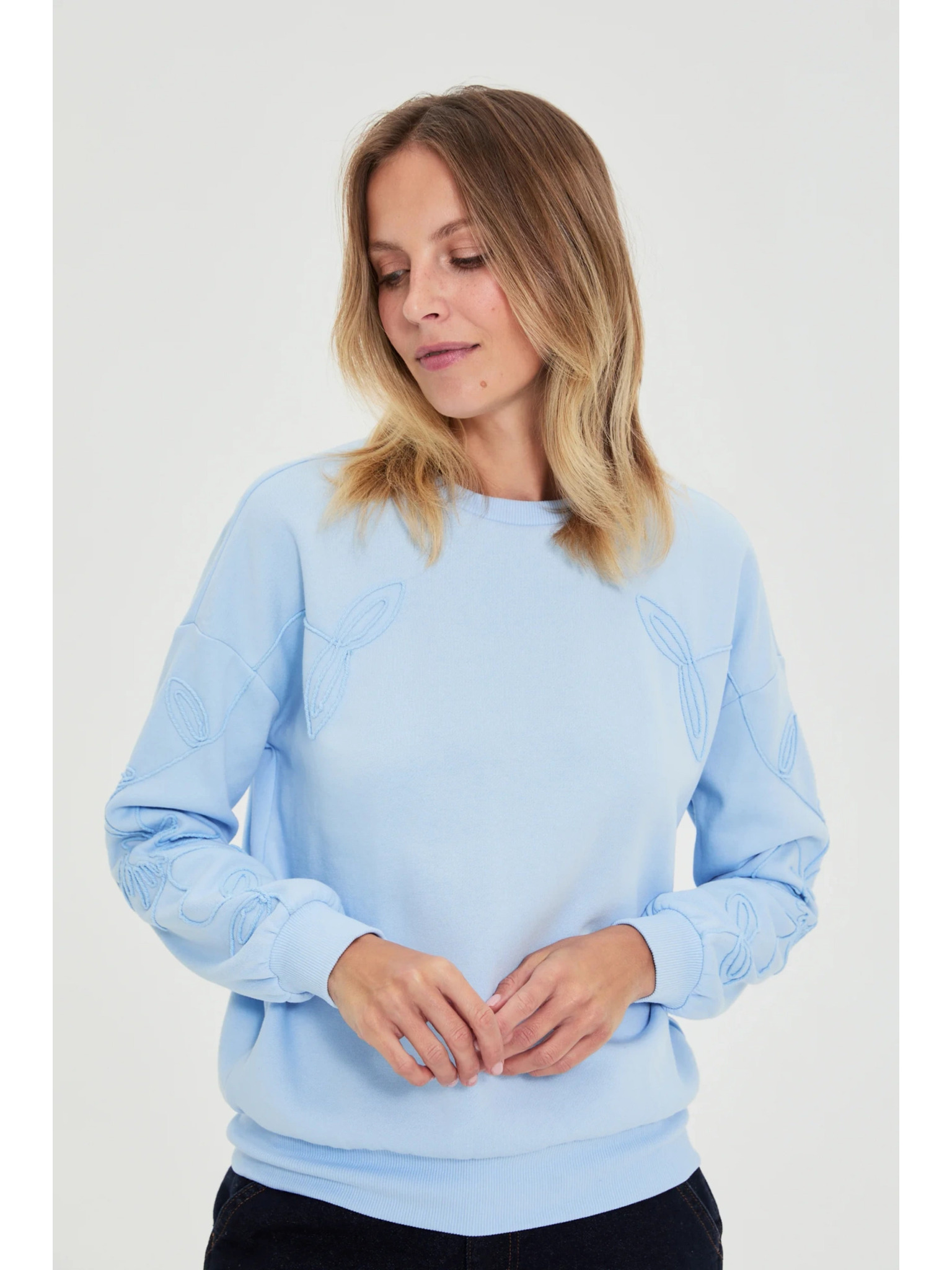 Bluse mit bestickter Blume weiß Moodo