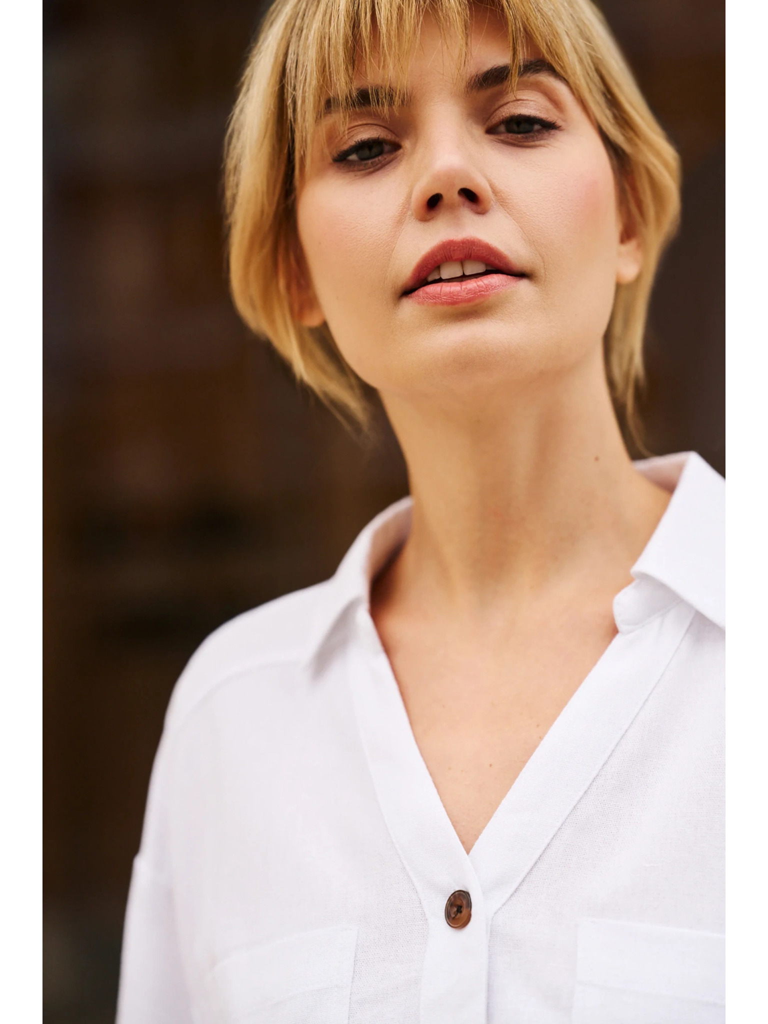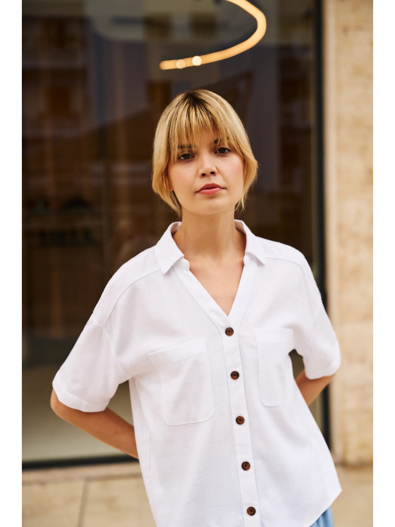 Weiße Bluse mit dekorativen Knöpfen Moodo