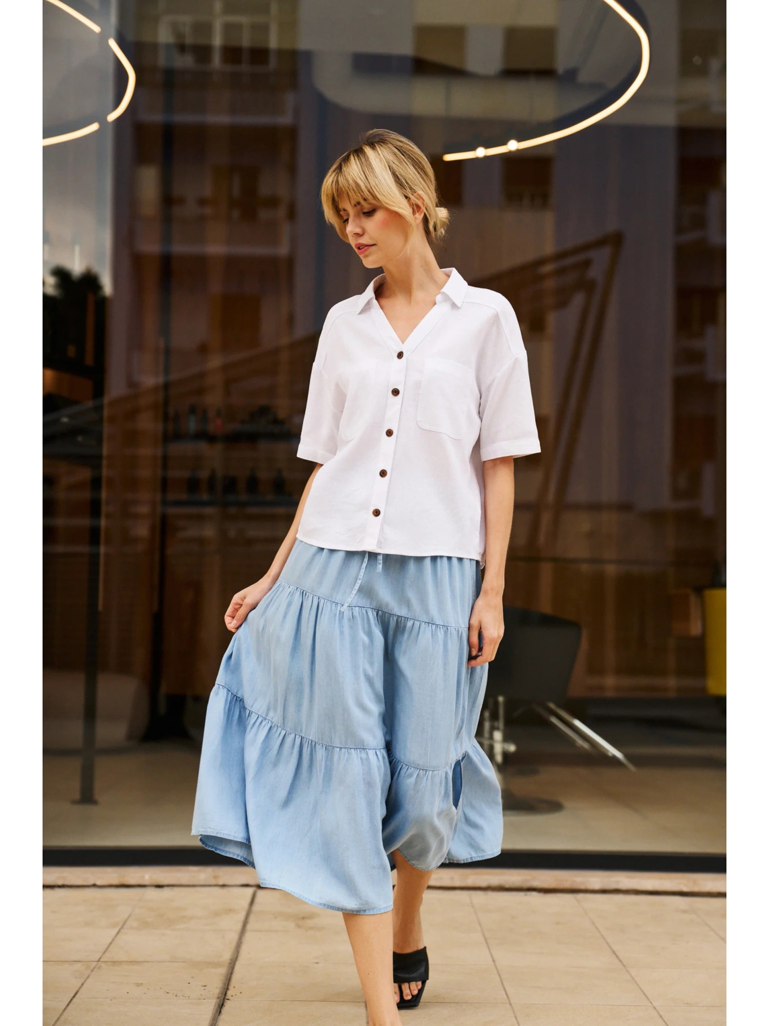 Hellblaues Hemd mit Volantärmeln Moodo