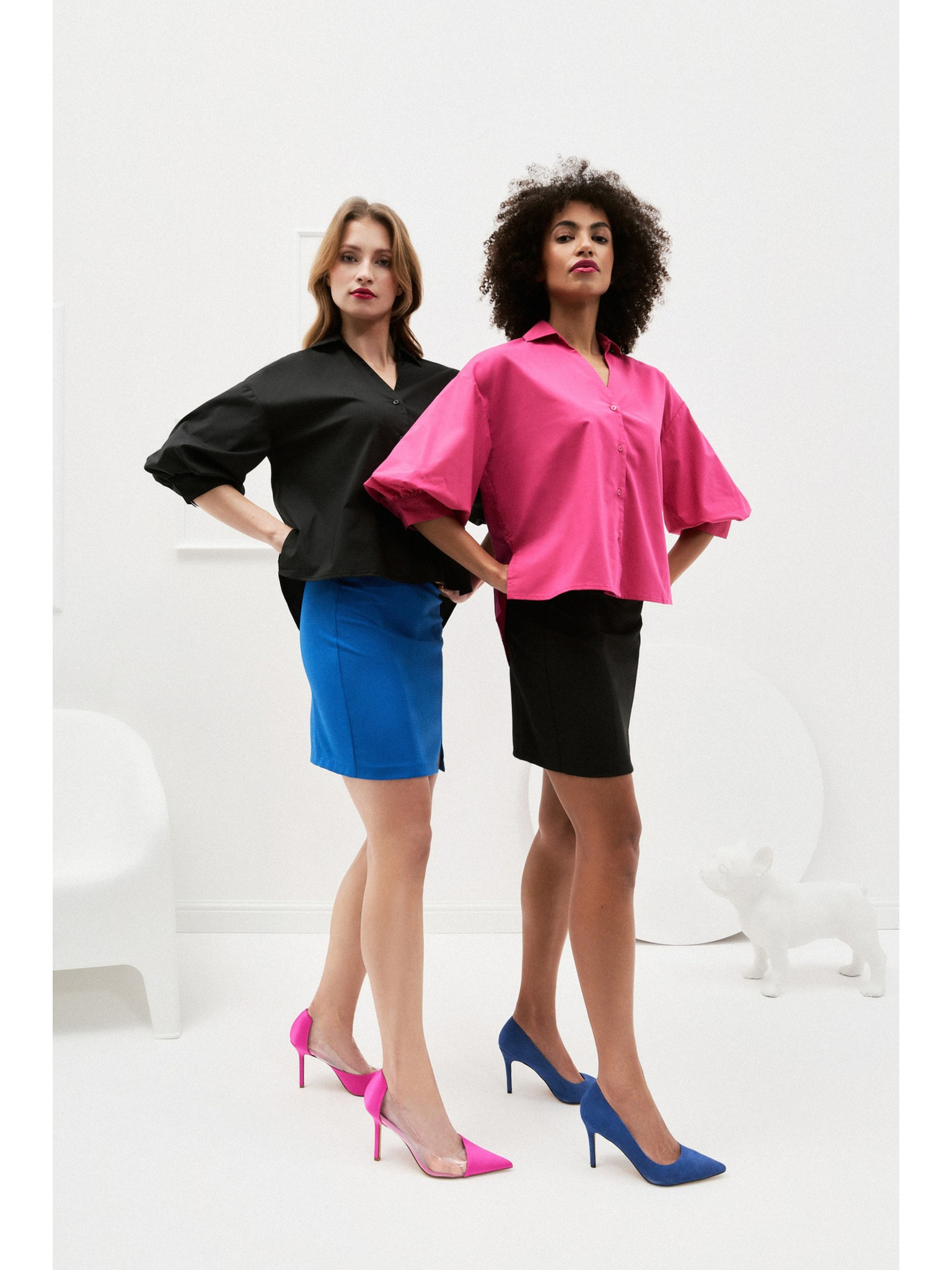 Bleistiftrock mit dekorativer Knopf schwarz Moodo