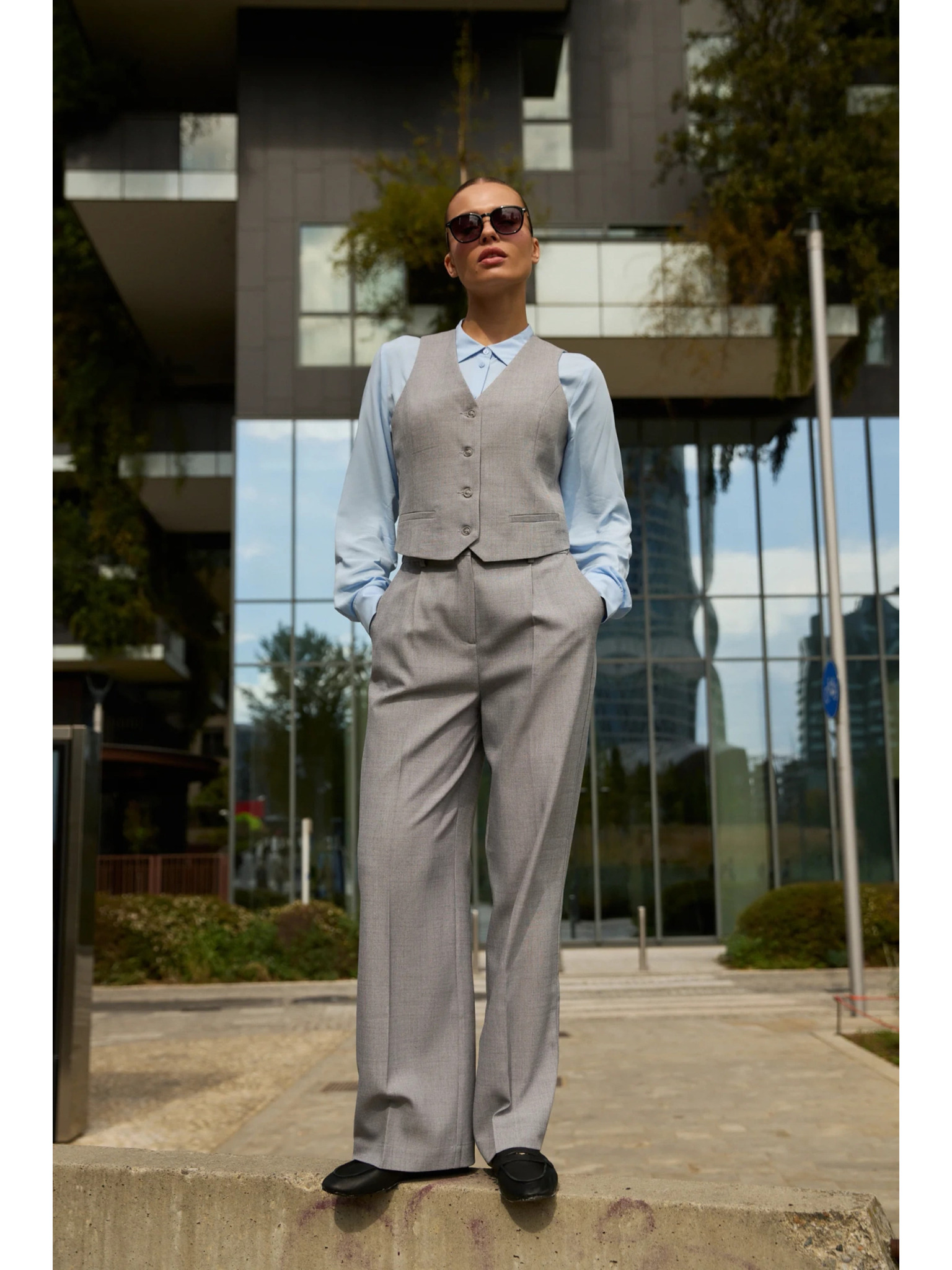 Graue Hose mit weitem Bein Moodo
