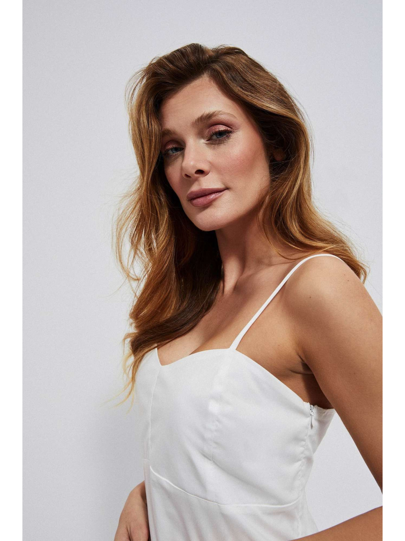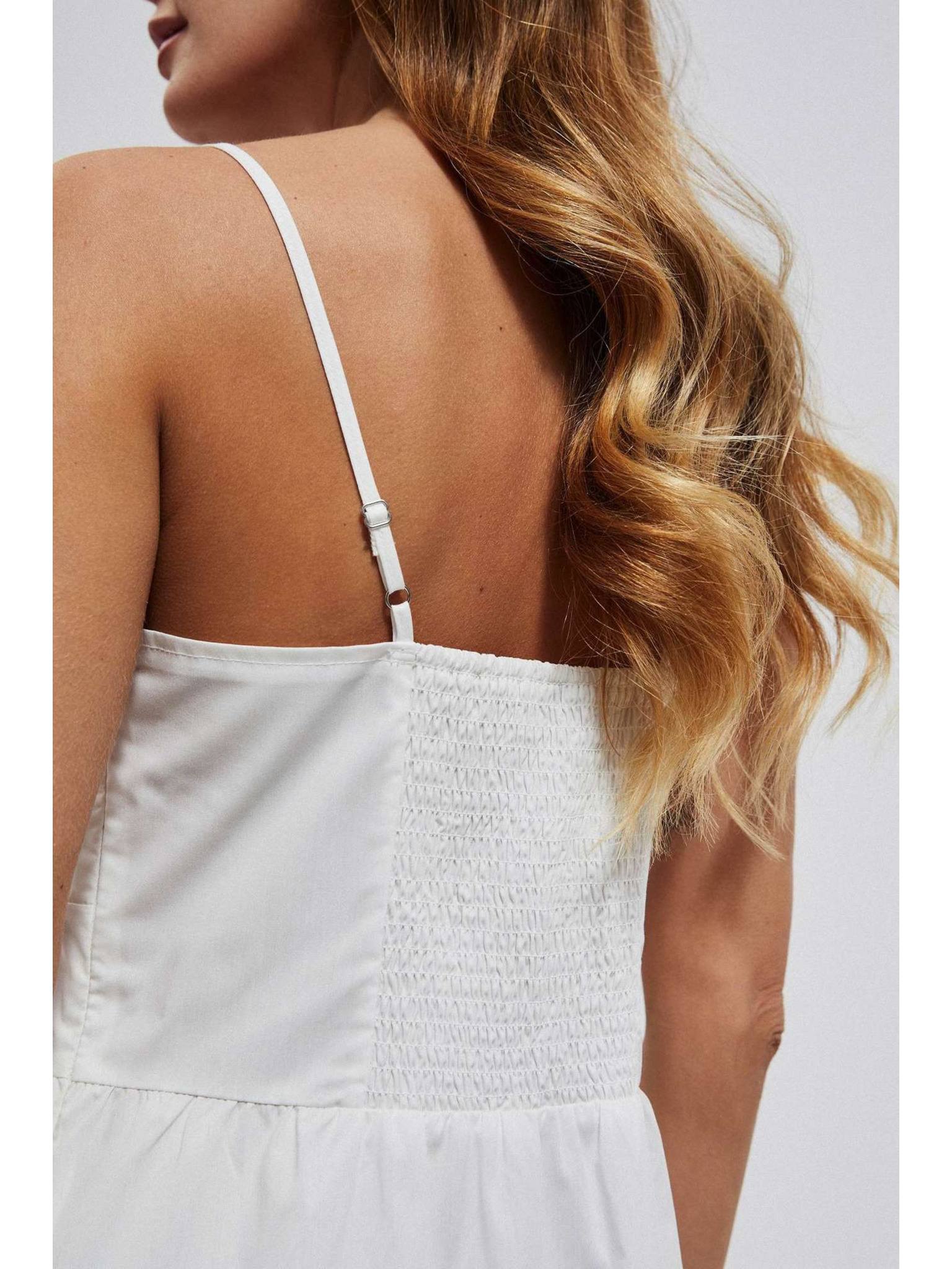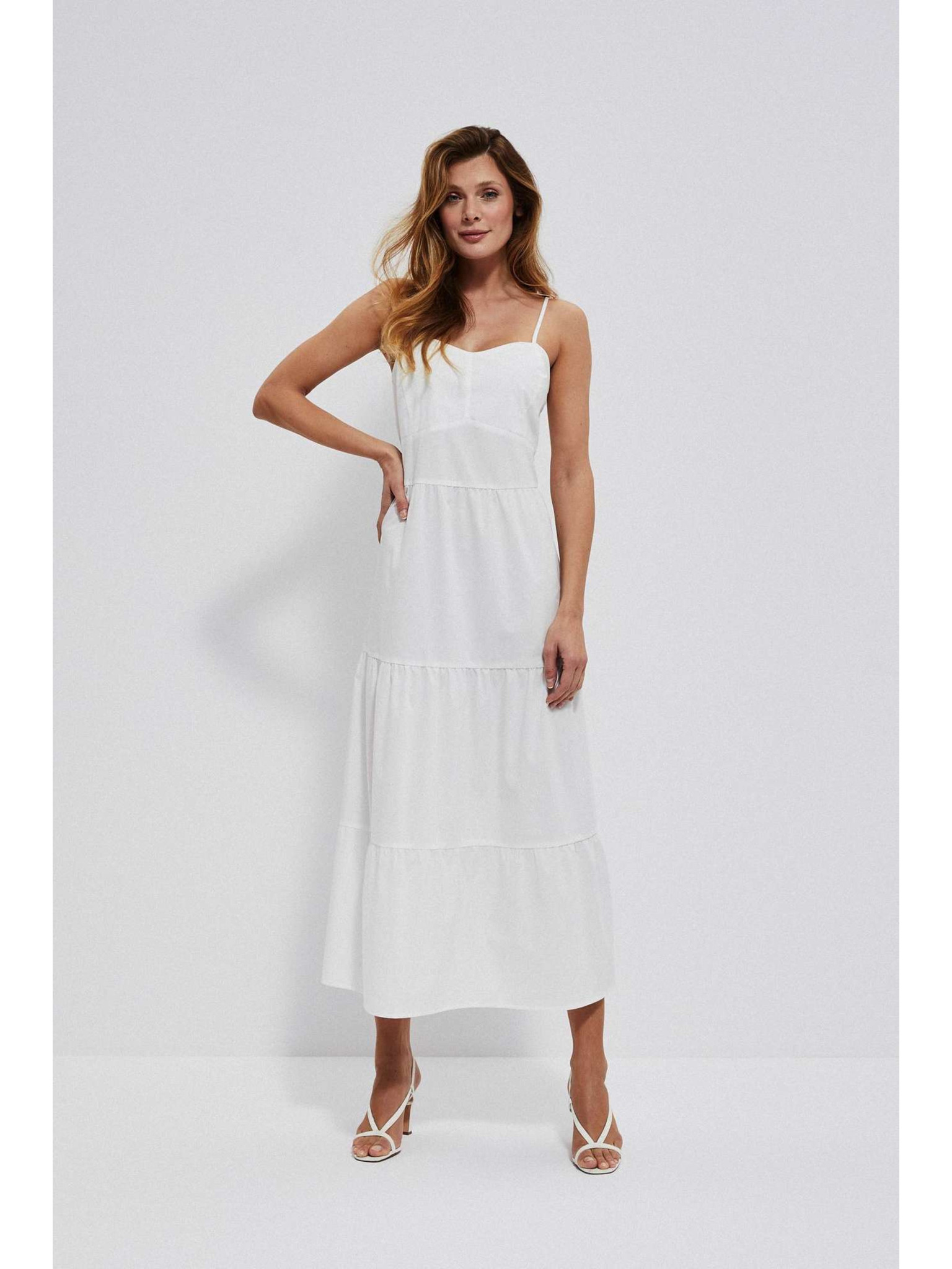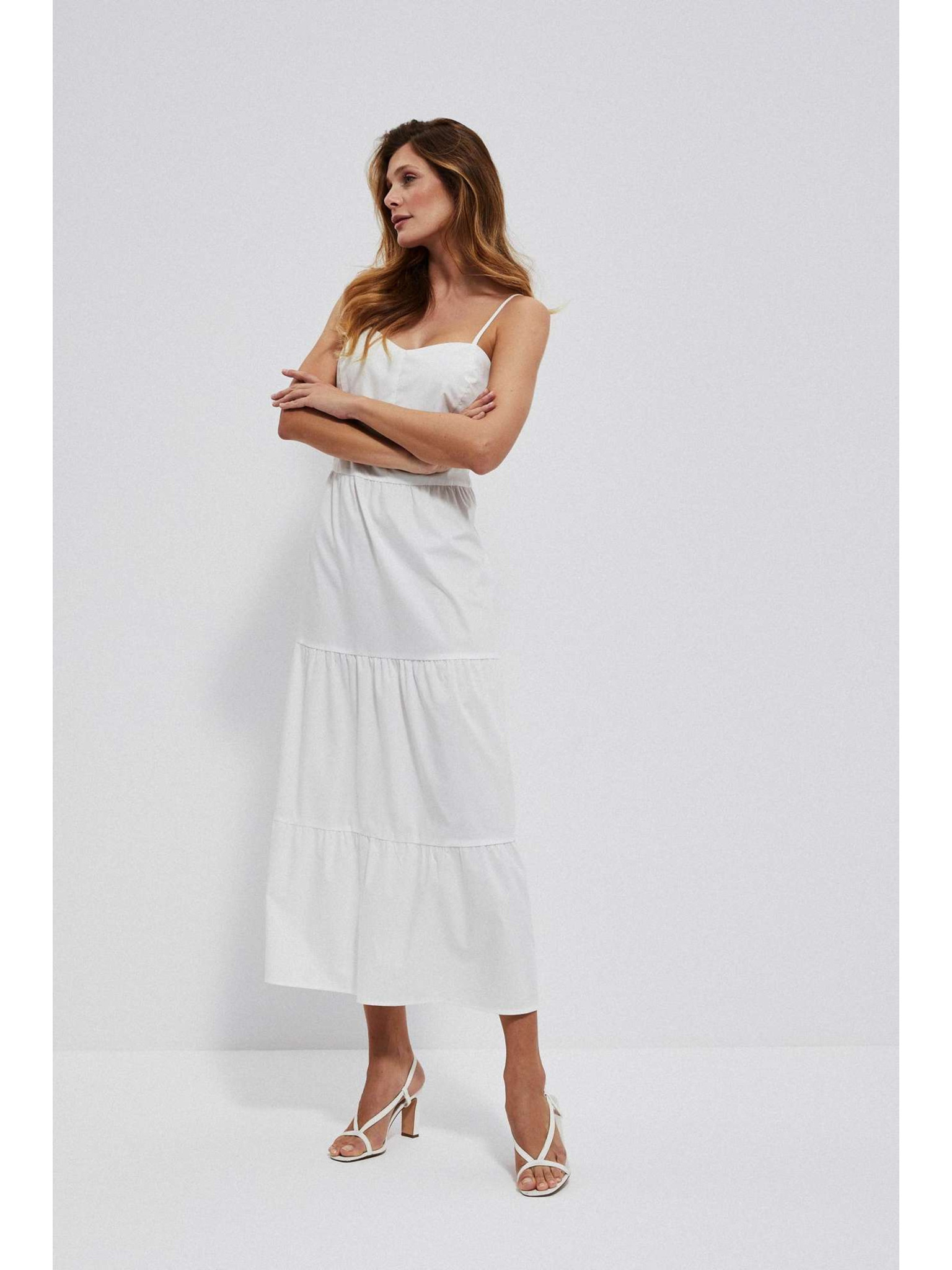 Weißes Midikleid mit Volants am Ausschnitt Moodo