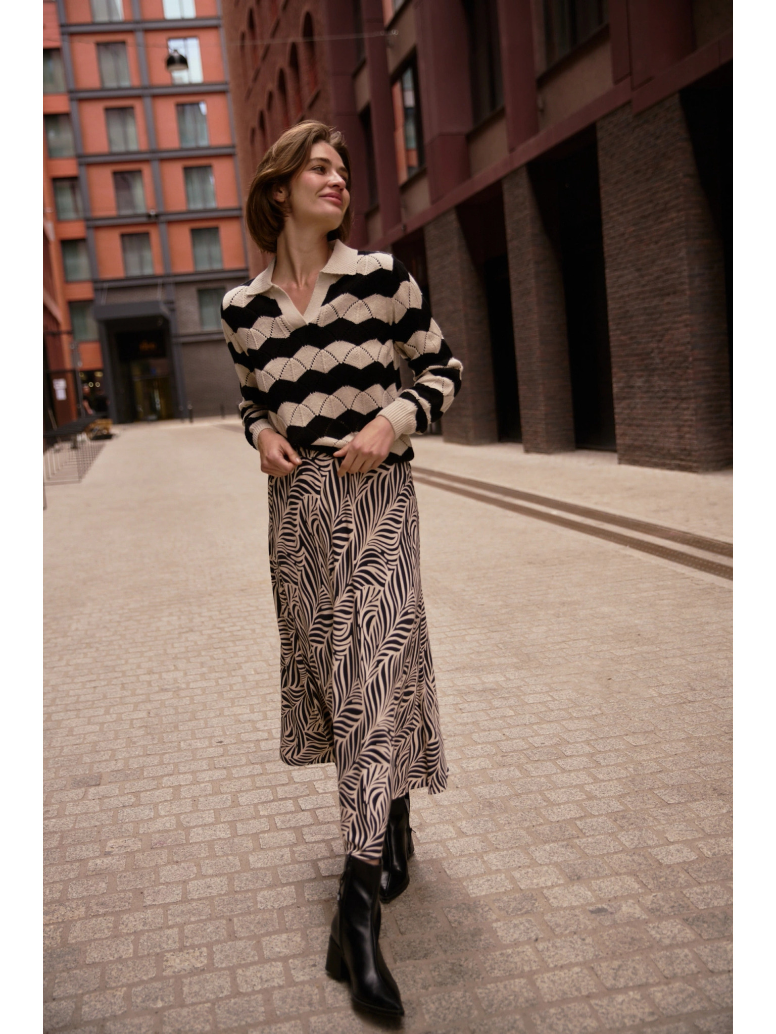 Beiger Pullover mit Streifen Moodo