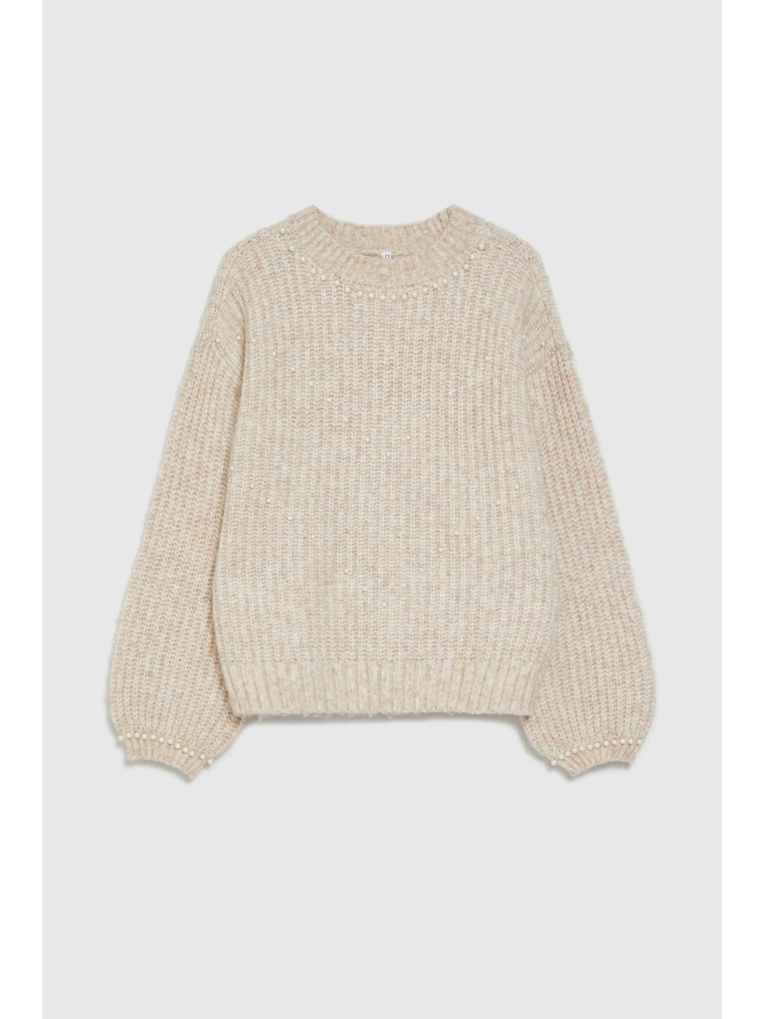 Beiger Pullover mit Ballonärmeln Moodo