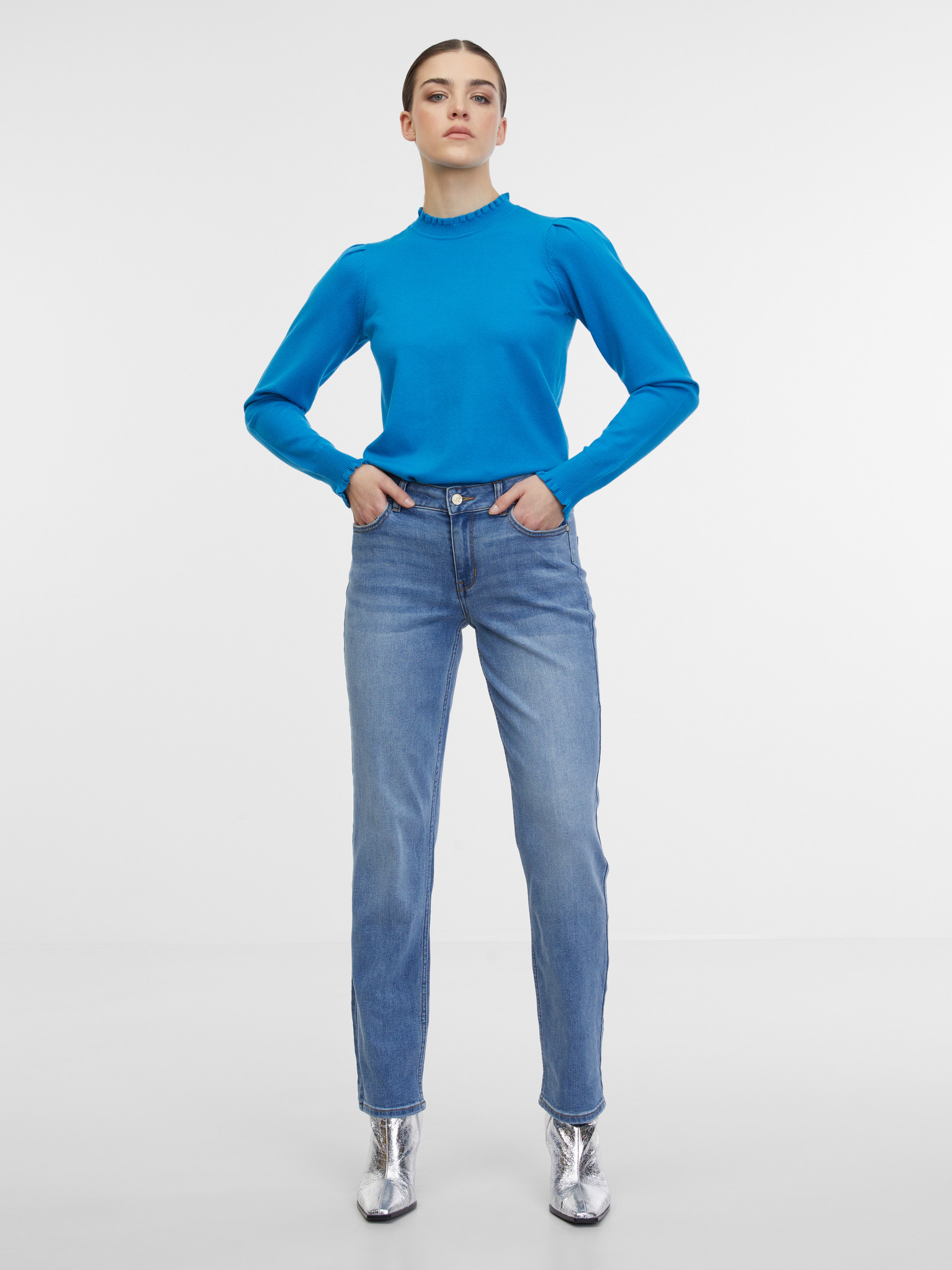 Azurfarbener Pullover mit Rundhalsausschnitt von Moodo